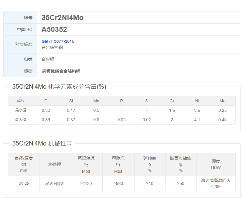 产品牌号:35Cr2Ni4Mo / 35Cr2Ni4MoA