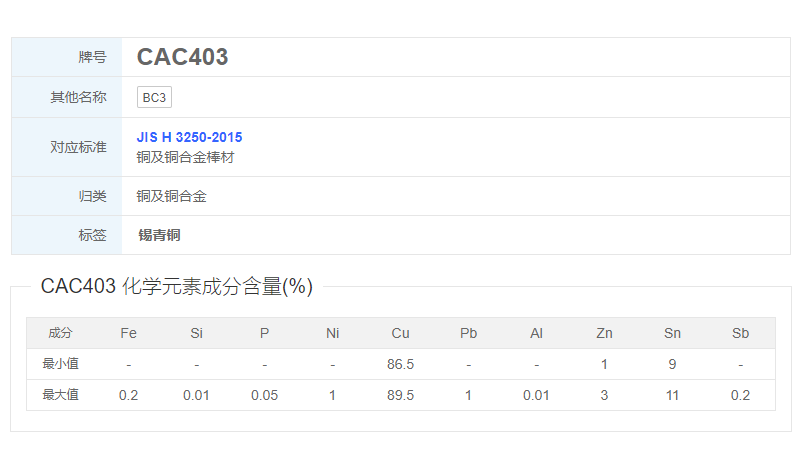 产品牌号:CAC403